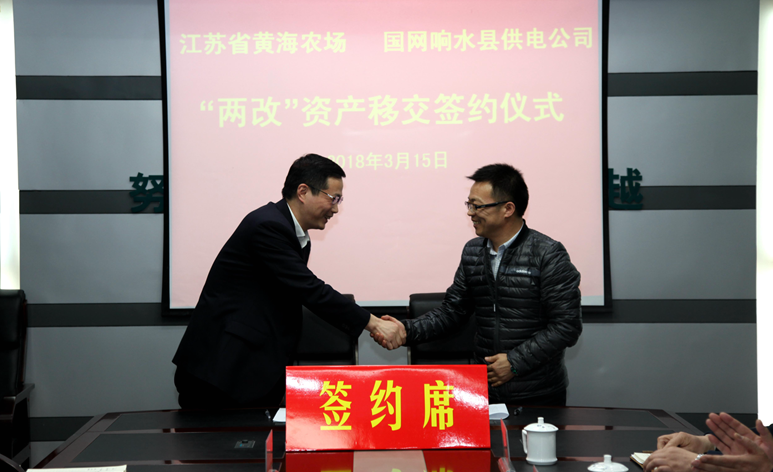 為貫徹落實(shí)國(guó)家和省委省政府及集團(tuán)公司黨委關(guān)于加快推進(jìn)農(nóng)場(chǎng)電力改造工作一系列決策部署,加快推進(jìn)黃海電力“兩改”工作。3月15日,黃海農(nóng)場(chǎng)與國(guó)網(wǎng)響水縣供電公司電力“兩改”資產(chǎn)移交簽約儀式在響水縣供電公司舉行,標(biāo)志著黃海電力“兩改”工作取得突破性的積極進(jìn)展,進(jìn)入職能接收、維修改造的實(shí)戰(zhàn)階段。黃海農(nóng)場(chǎng)黨委書記王亦勤、場(chǎng)長(zhǎng)單祥忠、副場(chǎng)長(zhǎng)薛亞林,響水供電公司黨委書記楊浩天、副總經(jīng)理沈曉東、王春雨共同出席簽約儀式。農(nóng)場(chǎng)和縣供電公司相關(guān)部室負(fù)責(zé)人參加了簽約儀式。