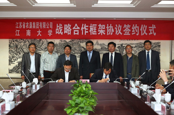 蘇墾農(nóng)發(fā)股份公司總部相關(guān)部門及蘇墾米業(yè)負(fù)責(zé)人;江南大學(xué)校長(zhǎng)辦公室、產(chǎn)業(yè)技術(shù)研究院、國(guó)家工程實(shí)驗(yàn)室等負(fù)責(zé)人參加了簽約儀式。