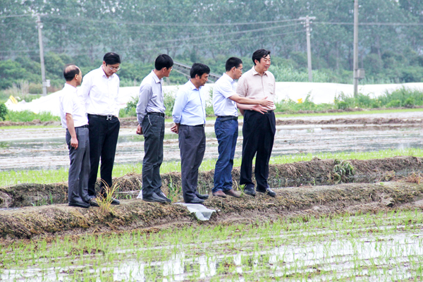 一到東壩頭,胡總就深入到場頭、田頭、糧食烘干線現(xiàn)場,實(shí)地了解今年東壩頭“三夏”工作開展情況,每到之處都詳細(xì)詢問,在了解東壩頭“三夏”工作進(jìn)展后,對(duì)東壩頭今年在小麥后期遭受多雨寡照的情況下,小麥單產(chǎn)仍實(shí)現(xiàn)超千斤水平,并利用4天時(shí)間把小麥全部收獲屯場表示肯定。當(dāng)看到水稻秧苗生長健壯,耕田、泡田、粗精平工作有序推進(jìn),并確保在6月18日前完成栽插表示贊賞。東壩頭“三夏”工作積極主動(dòng),為水稻高產(chǎn)奠定了基礎(chǔ),下一步只要加強(qiáng)精細(xì)管理,今年水稻又能領(lǐng)先于江蘇農(nóng)墾。