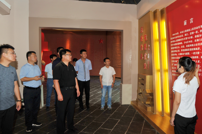 河北省塞北管理區(qū)的前身與淮海農(nóng)場在歷史上有著較為深厚了淵源,1955年從兩個農(nóng)場一個牧場合并組建的沽源農(nóng)場的第一任場長,就是當(dāng)年從農(nóng)建四師調(diào)任過去的李承恩擔(dān)任的。為了了解淮海的軍墾傳統(tǒng)文化,白建軍一行在單祥忠等人的陪同下,參觀了農(nóng)建四師陳列館,實地了解農(nóng)建四師時期,軍墾戰(zhàn)士響應(yīng)軍委主席毛澤東的號召,生產(chǎn)待命,建設(shè)農(nóng)場的歷史,并通過農(nóng)場公司領(lǐng)導(dǎo)和講解員的現(xiàn)場講述,讓白建軍一行真實體會到了農(nóng)建四師時期那“艱苦奮斗,不怕困難,團結(jié)奮進,無私奉獻”的淮海精神。