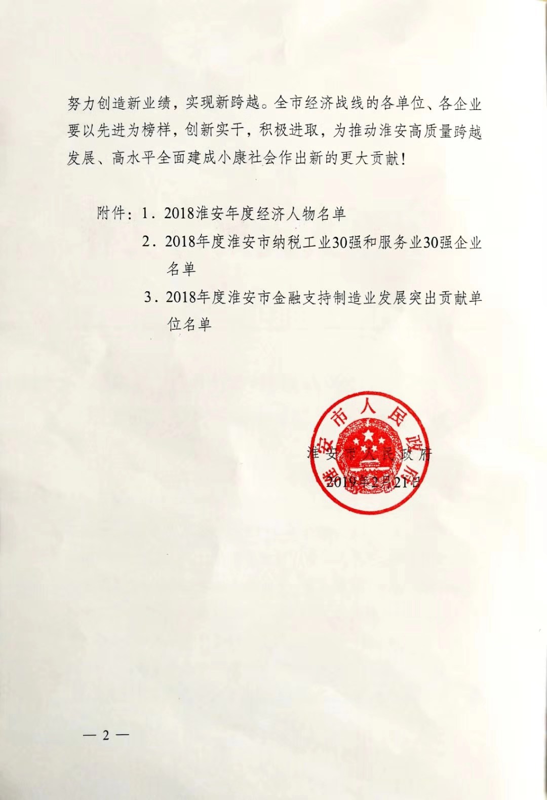 為表彰先進(jìn)、樹立標(biāo)桿、促進(jìn)淮安地方經(jīng)濟(jì)邁向高質(zhì)量發(fā)展行列,近日,由淮安市人民政府發(fā)起和組織開展的“淮安經(jīng)濟(jì)人物、淮安市納稅工業(yè)30強(qiáng)和服務(wù)業(yè)30強(qiáng)企業(yè)、淮安市金融支持制造業(yè)發(fā)展突出貢獻(xiàn)單位“評選活動(dòng)在淮揭曉并正式向社會(huì)發(fā)布,正大清江制藥以年納稅額超億元榮登2018年“淮安市納稅工業(yè)30強(qiáng)企業(yè)”第15位,至此正大清江制藥已連續(xù)兩年躋身“市納稅工業(yè)三十強(qiáng)企業(yè)”行列。