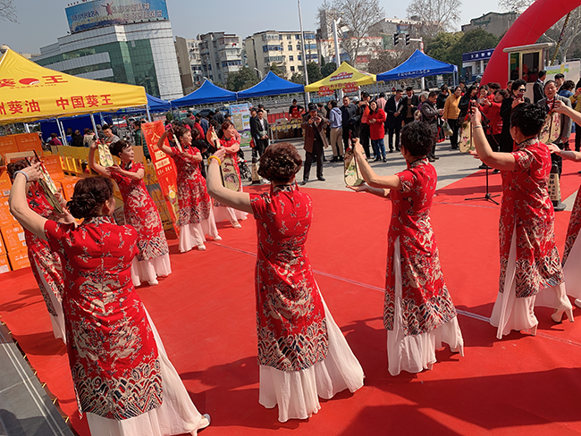 展銷(xiāo)會(huì)上,知青藝術(shù)團(tuán)傾情演唱了《知青功勞永不忘》,表演了脫口秀、旗袍秀、男女聲獨(dú)唱、笛子獨(dú)奏等節(jié)目,將會(huì)場(chǎng)氣氛推向高潮,吸引大批鎮(zhèn)江市民前來(lái)選購(gòu)。