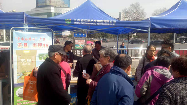 3月17日14時(shí),為期三天的“江蘇農(nóng)墾第二屆鎮(zhèn)江農(nóng)副產(chǎn)品展銷(xiāo)會(huì)”在金橋貿(mào)易公司勝利閉幕。本次展銷(xiāo)會(huì)以下放江蘇兵團(tuán)知青50周年慶典為契機(jī),以“3·15消費(fèi)者權(quán)益保障日”為提高消費(fèi)者滿意度為宗旨,匯集金太陽(yáng)糧油、黃海農(nóng)場(chǎng)、江心沙農(nóng)場(chǎng)、海天集團(tuán)、工商銀行、淮鹽等眾多廠商和品牌舉辦的農(nóng)副產(chǎn)品展銷(xiāo)會(huì)。