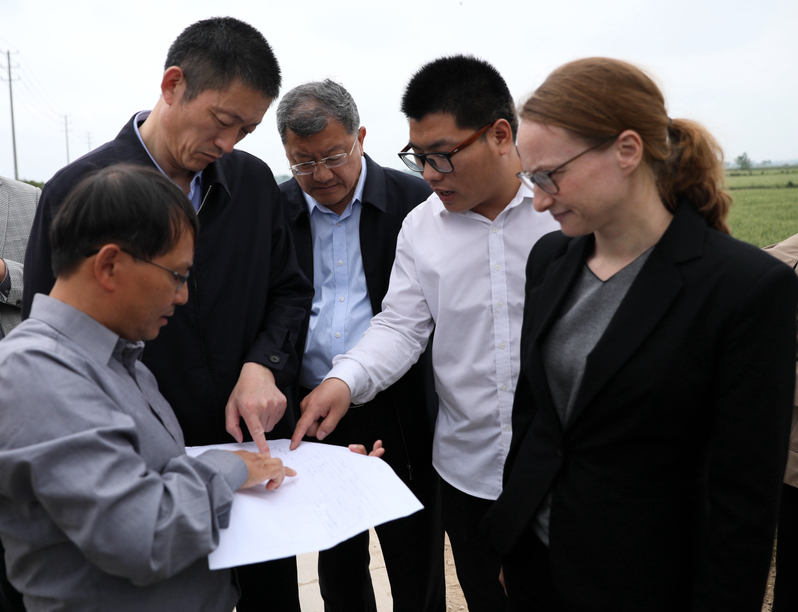 晴日暖風(fēng)生麥氣,綠陰幽草勝花時。5月15日,黃海金色的麥浪迎來了德意志聯(lián)邦共和國駐上海總領(lǐng)事館科技與商務(wù)領(lǐng)事朗素安、禮賓主管沙安迪、禮賓專員張立春、項目助理愛林娜以及連云港外事辦副主任李媛一行,就德國聯(lián)邦與食品農(nóng)業(yè)部計劃訪問黃海并考察中德農(nóng)業(yè)合作項目進行先遣考察。黃海農(nóng)場公司黨委書記、蘇墾農(nóng)發(fā)黃海分公司總經(jīng)理、中德示范園主任賀在銳,農(nóng)場公司董事長、總經(jīng)理李衛(wèi)東對相關(guān)事宜進行對接溝通與磋商。中德示范園副主任何彥平、德國長期專家金·卡姆等陪同交流。