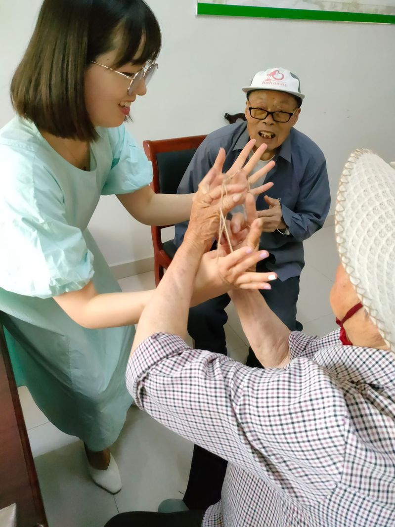 當(dāng)天下午,工作人員在中心與老人玩起了翻花繩、唱童謠、猜謎語等活動,用獨特的方式重溫兒時的美好時光,追憶童年。“時間好像一下子回到了50年前,真是沒想到都這把年紀(jì)了還能過六一,上次居然還上了那個抖音,家里人看了都說外婆成明星了?!鳖櫮棠绦χ劬Σ[成一道線說道。“我們平時和小孩接觸,都是看他們玩。今天我們也成了主角,可以和你們一起玩,還給我們敲背捏腿,真是太高興了?!?/span>