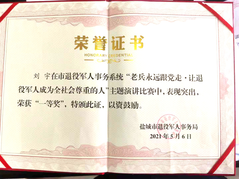 近日,農(nóng)場公司財務(wù)部青年員工——劉宇在鹽城舉行的“老兵永遠跟黨走·讓退役軍人成為全社會尊重的人”演講比賽中榮獲一等獎。
