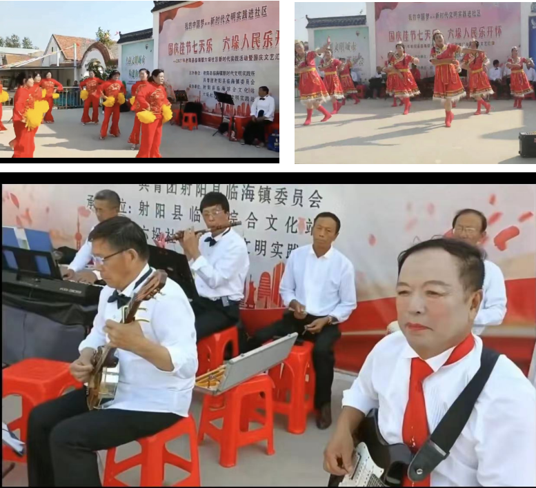 國慶佳節(jié),舉國歡騰。為進(jìn)一步弘揚(yáng)中華民族傳統(tǒng)文化,豐富農(nóng)場社區(qū)居民的精神文化生活,營造出熱烈喜慶、文明祥和的節(jié)日氛圍,10月4日,淮海農(nóng)場職工居民組織的文化表演節(jié)目還以場鄉(xiāng)共建的形式,走進(jìn)了鄰近的臨海鎮(zhèn)六垛社區(qū)居委會文明實(shí)踐站,開展歡歡喜喜迎國慶佳節(jié)七天樂活動(dòng),與當(dāng)?shù)剌爡^(qū)居民歡聚一堂,一起憧憬祖國輝煌明天。
