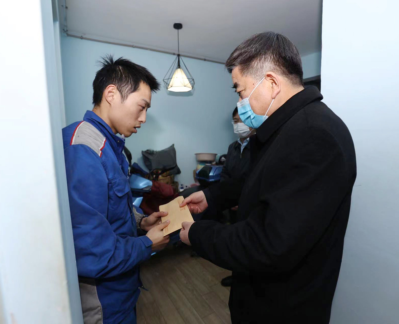 在困難職工張新輝的出租房中,魏紅軍詳細(xì)詢問了他手術(shù)后的身體狀況和工作生活情況,在聽聞張新輝家庭收入微薄、自身還要負(fù)擔(dān)妹妹的學(xué)費(fèi)時(shí),對其勇?lián)彝ヘ?zé)任表示肯定,叮囑蘇舜公司要繼續(xù)做好幫扶工作,將企業(yè)的關(guān)懷和溫暖送到困難職工的心坎上。隨后,魏紅軍來到蘇舜公司,慰問了一位替父治病已負(fù)債百萬的困難職工陶鋮康,在仔細(xì)詢問其父病情和家庭收入后,表示組織上將會(huì)持續(xù)關(guān)心,鼓勵(lì)他積極樂觀面對生活,增強(qiáng)戰(zhàn)勝困難的勇氣和信心。