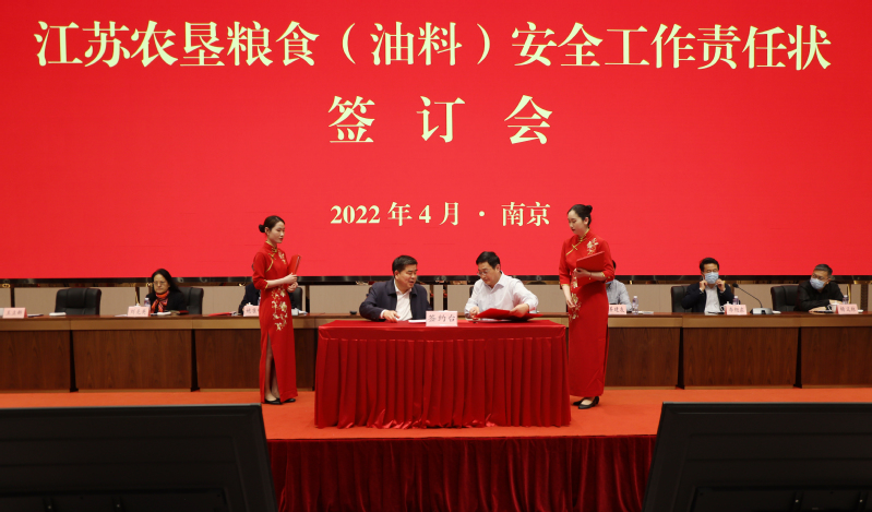 會(huì)上,魏紅軍代表集團(tuán)公司黨委,與集團(tuán)公司農(nóng)業(yè)發(fā)展部、蘇墾農(nóng)發(fā)股份公司及18家農(nóng)場(chǎng)公司主要負(fù)責(zé)人簽訂了糧食(油料)安全責(zé)任狀。