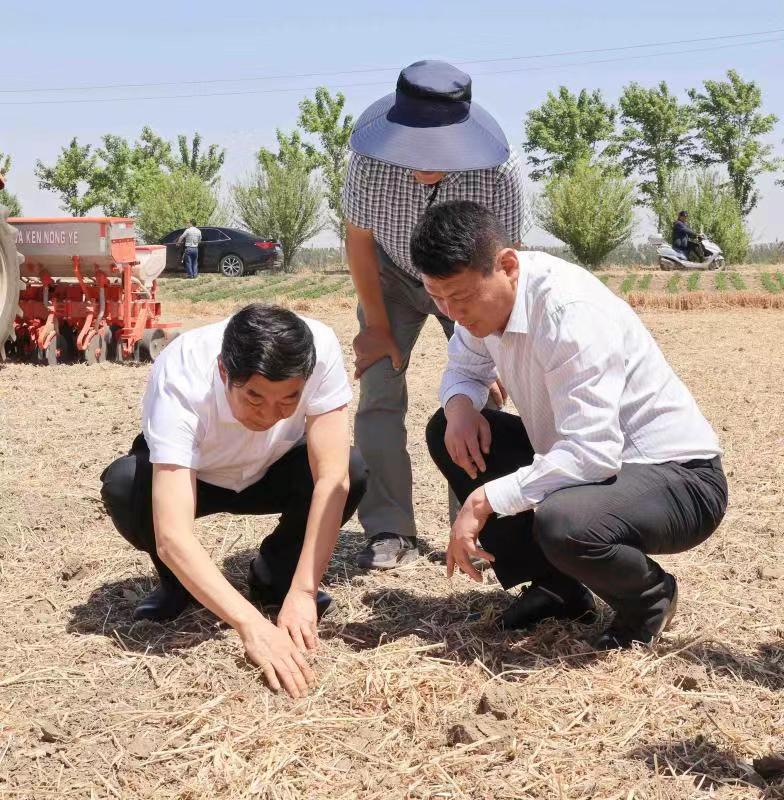 胡兆輝先后考察了蘇墾農(nóng)發(fā)股份公司崗埠分公司王溝生產(chǎn)區(qū)玉米大豆帶狀復(fù)合種植播種現(xiàn)場(chǎng)、耕地現(xiàn)場(chǎng)和崗埠生產(chǎn)區(qū)曬場(chǎng)糧食安全情況,并與檢查玉米大豆帶狀復(fù)合種植質(zhì)量的田間工作人員親切交談,對(duì)崗埠全場(chǎng)“一盤棋”、全力戰(zhàn)“三夏”給予充分肯定。胡兆輝指出,要提高政治站位,堅(jiān)決服從國(guó)家戰(zhàn)略需要,高質(zhì)量完成省委省政府交予的重要任務(wù)。要增強(qiáng)全局意識(shí),堅(jiān)定信心,服從指揮,把思想認(rèn)識(shí)行動(dòng)統(tǒng)一到集團(tuán)公司決策部署上來,以“國(guó)之大者”的胸懷壓實(shí)責(zé)任擔(dān)當(dāng)。要堅(jiān)定不移推進(jìn)全面從嚴(yán)治黨,推動(dòng)黨建工作與產(chǎn)業(yè)融合發(fā)展,以高質(zhì)量黨建引領(lǐng)高質(zhì)量發(fā)展。胡兆輝強(qiáng)調(diào),要通過推進(jìn)玉米大豆帶狀復(fù)合種植推動(dòng)產(chǎn)業(yè)結(jié)構(gòu)優(yōu)化升級(jí),及時(shí)調(diào)整產(chǎn)業(yè)結(jié)構(gòu)和產(chǎn)品布局,加大機(jī)械投入,大力發(fā)展現(xiàn)代農(nóng)業(yè),力爭(zhēng)實(shí)現(xiàn)跨越式發(fā)展。要落實(shí)“藏糧于地、藏糧于技”以及藏糧于管戰(zhàn)略,嚴(yán)格執(zhí)行技術(shù)規(guī)程和試驗(yàn)示范工作方案,及時(shí)總結(jié)經(jīng)驗(yàn),確保玉米大豆帶狀復(fù)合種植任務(wù)按時(shí)完成,堅(jiān)決打贏玉米大豆帶狀復(fù)合種植播種這場(chǎng)硬仗。胡兆輝要求,要深刻理解做好“三夏”工作的重大意義,充分認(rèn)清“三夏”工作的復(fù)雜性、艱巨性、特殊性,攻堅(jiān)克難,主動(dòng)擔(dān)當(dāng)作為,全面抓好信訪穩(wěn)定、疫情防控、安全生產(chǎn)等工作,圍繞“五保一控”目標(biāo),誓奪“三夏”工作全面勝利,為江蘇農(nóng)墾高質(zhì)量完成10萬畝玉米大豆帶狀復(fù)合種植貢獻(xiàn)崗埠力量。