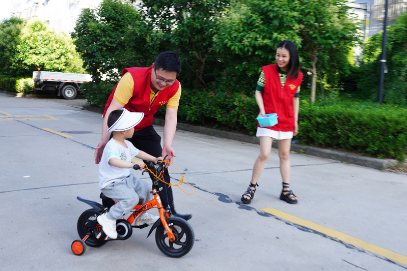 6月10日下午,弶港農(nóng)場(chǎng)團(tuán)委“愛心爸爸”“愛心媽媽”帶著兒童繪本和玩具,走進(jìn)困境兒童小浩浩的家里?!皧W迪曼與怪獸作戰(zhàn)斗…… ”夢(mèng)想小屋的書桌前,浩浩依偎在“愛心媽媽”孫菁懷里,聽著有聲有色的奧特曼的故事?!皠e怕,勇敢地往前騎,我在身后保護(hù)你”“我們一起來(lái)比賽,看誰(shuí)快”小區(qū)的空地上,在“愛心爸爸”陳海榮鼓勵(lì)下,浩浩騎著兒童單車,開朗的笑聲在小區(qū)里飄蕩。一起玩拼圖、畫畫、做游戲,幾個(gè)小時(shí)下來(lái),不愛說(shuō)話的小浩浩從最初的羞澀生疏,到漸漸展露笑容,短暫的相聚中,與“愛心爸媽”建立了深厚的信任和感情。