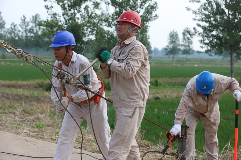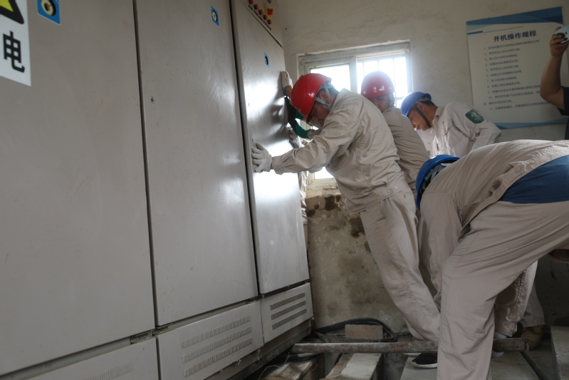 7月5日上午6點10分?!皸铌牥。?/span>8隊南電站不工作了!”接報后,凱惠電力寶應湖分公司負責人楊加春立即組織3名電工趕到現(xiàn)場。經(jīng)排查,是電站開關柜壞了。落實開關柜、組織材料,他們兵分兩路共同推進。十余個電話打過后,趙愛華終于在農(nóng)機庫找到一臺型號匹配的開關柜。8點趙愛華等將登高工具、絕緣棒、電纜等材料運到電站。電工邵榮祥戴上安全帽,用絕緣棒將三相開關斷開,率先爬上高壓電桿,又和電工趙愛華、劉福相一起將壞電柜上的控制開關線一一拆除。不足9平方的泵房里,悶熱狹小,壓得人透不氣來,地處田間雜草叢中,蚊蟲直撞人臉,他們?nèi)徊活?,全神投入搶修?/span>不一會兒就大汗淋漓。拆除后,他們又與8隊工人一起把新柜抬進泵房。200多斤開關柜死沉死沉,狹小的空間嚴重限制作業(yè),一不小心趙愛華的手肘撞在了電柜上,一陣鉆心得痛。終于把柜子擺到合適位置,接線、拉電纜,電工們立即展開。11點,邵榮祥再次爬上高壓電桿,推上開關,啟動控制,電站發(fā)出隆隆的歡唱。此時,溫度計顯示的室外溫度達到了43攝氏度,電工們已全身濕透。