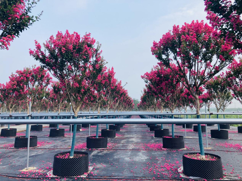 新洋林業(yè)公司容器苗三期當(dāng)下正是一幅花開(kāi)似霞的盛景,紫薇花團(tuán)團(tuán)簇簇掛滿(mǎn)枝頭,相當(dāng)奪目。拳頭產(chǎn)品“四川紅”紫薇是農(nóng)場(chǎng)公司黨委和林業(yè)公司4月份頂著疫情的壓力,積極爭(zhēng)取引進(jìn)的產(chǎn)品,到了7月份便成為了附近居民的網(wǎng)紅打卡產(chǎn)品,獲得了居民們的一致好評(píng)和稱(chēng)贊。其花期極長(zhǎng),從6月一直持續(xù)到10月,宋代楊萬(wàn)里贊曰:“誰(shuí)道花無(wú)紅百日,紫薇常放半年花?!泵鞔ピ?shī)云:“紫薇開(kāi)最久,爛漫十旬期?!币虼耍限币灿小鞍偃占t”之稱(chēng)。