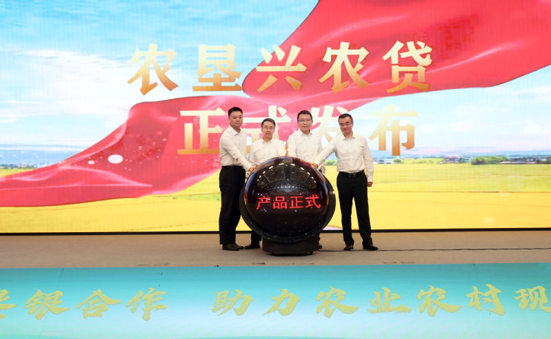 會(huì)上,吳本輝、胡建斌、姜建友、湯宇共同發(fā)布了“農(nóng)墾興農(nóng)貸”產(chǎn)品,姜建友、湯宇代表雙方簽署了戰(zhàn)略合作協(xié)議。