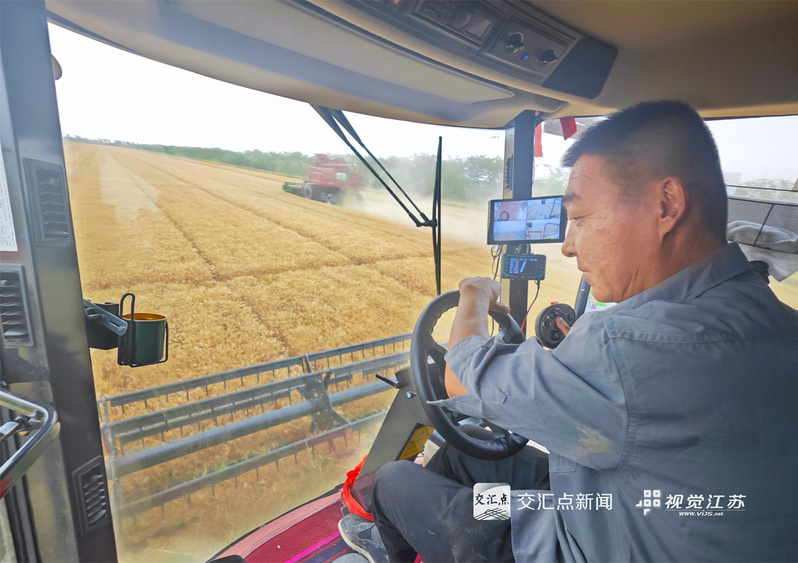 (特約攝影 許昌銀 錢厚紅 15:24攝 20:39上線)五月的麥田,金穗飄香。5月26日,淮安盱眙洪澤湖畔的江蘇農(nóng)墾三河農(nóng)場(chǎng)的3.82萬畝小麥開鐮收割。當(dāng)?shù)乩们绾锰鞖饧泳o收割,確保顆粒歸倉。