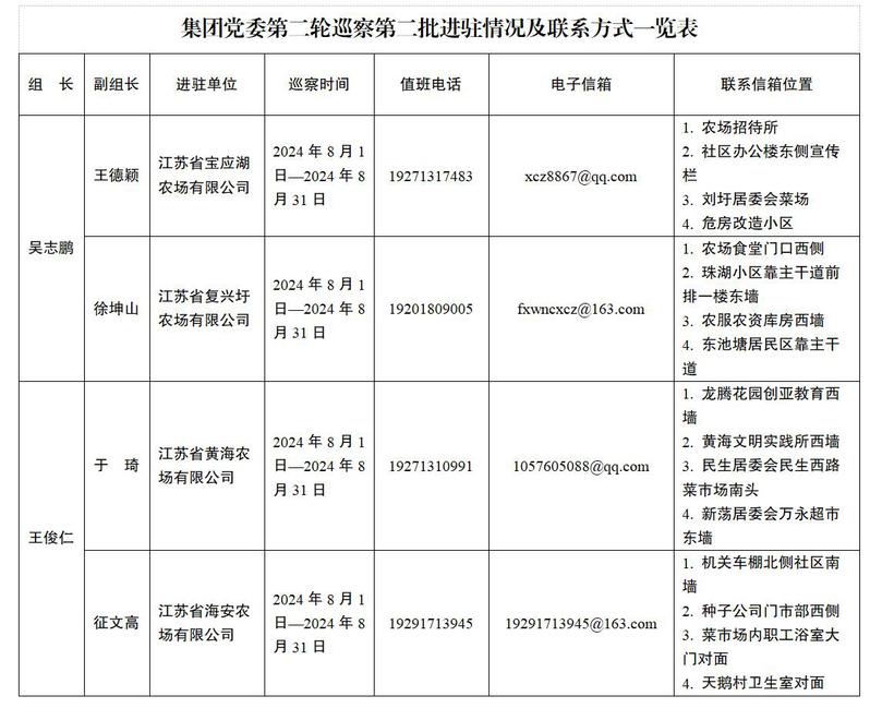 根據(jù)集團(tuán)黨委統(tǒng)一部署,8月1日,集團(tuán)黨委巡察組已完成第二輪第二批4家被巡察黨組織進(jìn)駐工作。各被巡察單位分別召開巡察進(jìn)駐動(dòng)員會(huì)。會(huì)上,集團(tuán)黨委巡察組組長(zhǎng)作動(dòng)員講話,深入學(xué)習(xí)貫徹習(xí)近平總書記關(guān)于黨的自我革命的重要思想和關(guān)于巡視工作的重要論述,通報(bào)集團(tuán)黨委第二輪巡察工作重點(diǎn)和任務(wù)安排,對(duì)扎實(shí)開展巡察工作提出要求。本輪巡察,集團(tuán)黨委巡察組將聚焦“兩個(gè)維護(hù)”根本任務(wù)和推進(jìn)黨的自我革命“九個(gè)以”實(shí)踐要求,緊扣因地制宜發(fā)展新質(zhì)生產(chǎn)力、國(guó)企改革深化提升行動(dòng)和“建設(shè)現(xiàn)代農(nóng)業(yè)大基地、大企業(yè)、大產(chǎn)業(yè)”等重大任務(wù),全面貫徹黨的巡視工作方針,圍繞政治巡察“四個(gè)聚焦”監(jiān)督重點(diǎn),緊盯權(quán)力和責(zé)任,緊盯“一把手”和領(lǐng)導(dǎo)班子,緊盯群眾反映強(qiáng)烈的問題,開展政治監(jiān)督,查找政治偏差,推動(dòng)被巡察單位各項(xiàng)工作高質(zhì)量發(fā)展,為打造現(xiàn)代農(nóng)業(yè)航母、加快建設(shè)一流企業(yè)、構(gòu)建“清風(fēng)在田”廉潔生態(tài)體系提供堅(jiān)強(qiáng)保障。集團(tuán)黨委巡察組將在被巡察單位現(xiàn)場(chǎng)工作一個(gè)月。巡察期間,設(shè)專門值班電話、電子信箱、聯(lián)系信箱等,主要受理涉及被巡察單位領(lǐng)導(dǎo)班子及其成員、相關(guān)重點(diǎn)崗位干部(含已離退休、已調(diào)離)的問題反映。巡察組在第二批被巡察單位受理信訪時(shí)間截止到2024年8