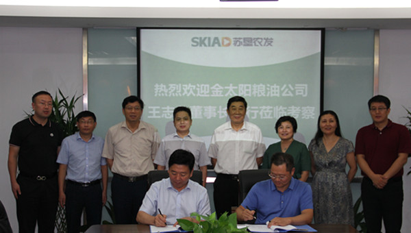 8月22日,金太陽糧油股份有限公司董事長王志榮一行到訪蘇墾農(nóng)發(fā)股份公司總部,集團公司總經(jīng)理、蘇墾農(nóng)發(fā)股份公司董事長胡兆輝,集團公司副總經(jīng)理仲小兵,集團公司黨委委員、蘇墾農(nóng)發(fā)股份公司總裁蘇志富與王志