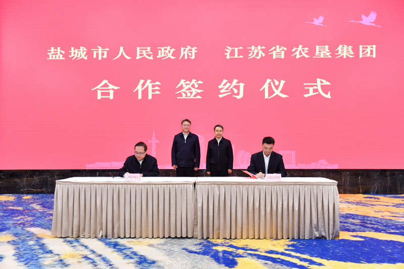 4月2日下午,集團(tuán)公司與鹽城市簽訂合作框架協(xié)議。鹽城市委書(shū)記周斌,集團(tuán)公司黨委書(shū)記、董事長(zhǎng)吳本輝出席簽約儀式并致辭。鹽城市委副書(shū)記、市長(zhǎng)張明康,集團(tuán)公司黨委副書(shū)記、總經(jīng)理姜建友代表雙方簽約。鹽城市委常委、秘書(shū)長(zhǎng)薛盛堂、市委常委、副市長(zhǎng)王連春,集團(tuán)公司領(lǐng)導(dǎo)劉耀武、王立新和總經(jīng)濟(jì)師朱亞?wèn)|出席,鹽城市副市長(zhǎng)王娟主持簽約儀式。周斌向江蘇農(nóng)墾長(zhǎng)期以來(lái)對(duì)鹽城經(jīng)濟(jì)社會(huì)發(fā)展的關(guān)心支持表示感謝,并簡(jiǎn)要介紹了鹽城的“三農(nóng)”工作情況。他說(shuō),作為省內(nèi)農(nóng)業(yè)大市、產(chǎn)糧大市,鹽城糧食總產(chǎn)常年保持在140億斤以上,是長(zhǎng)三角中心區(qū)農(nóng)業(yè)總產(chǎn)值唯一超千億元的城市,為端牢“中國(guó)飯碗”展現(xiàn)出鹽城擔(dān)當(dāng)。江蘇農(nóng)墾是國(guó)有農(nóng)業(yè)經(jīng)濟(jì)的骨干和代表,是推進(jìn)農(nóng)業(yè)農(nóng)村現(xiàn)代化的重要力量。鹽城與江蘇農(nóng)墾歷史淵源深厚、產(chǎn)業(yè)高度契合、資源優(yōu)勢(shì)互補(bǔ),雙方有著良好的合作基礎(chǔ),希望雙方以此次簽約為契機(jī),按照省委部署要求,立足墾區(qū)和市域特點(diǎn),進(jìn)一步深化項(xiàng)目、機(jī)制等方面的創(chuàng)新合作,積極建設(shè)規(guī)模生產(chǎn)大基地,全面夯實(shí)糧食安全根基。積極互學(xué)互鑒,加強(qiáng)產(chǎn)學(xué)研合作,加快種業(yè)關(guān)鍵核心技術(shù)攻關(guān),發(fā)揮產(chǎn)業(yè)鏈協(xié)同作用,打造一批特色鮮明的農(nóng)業(yè)產(chǎn)業(yè)集群。大力培育農(nóng)業(yè)新質(zhì)生產(chǎn)力,提升農(nóng)