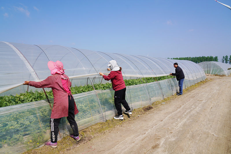 田間,種植戶江月香正在給瓜棚揭膜透氣,看到陳主任連聲感謝說,“要不是昨天你幫忙帶人將瓜棚整理好,我和隔壁田的老單就得損失好幾十萬元了。”隔幾條田正在西瓜大棚里授粉的老單聽到陳主任的說話聲,連忙從棚里走來說感謝。4月29日晚,受東北冷渦影響,8-10級的雷暴大風(fēng)夾雜著冰雹襲擊農(nóng)場,第三生產(chǎn)區(qū)12連的西瓜生產(chǎn)基地有十多家西瓜種植戶受到不同程度的損害,其中位于風(fēng)口處的小江和老單家有近40個(gè)大棚受損,望著整條田被風(fēng)刮飛的大棚,江月香急得直掉眼淚。天氣報(bào)告預(yù)測還有大風(fēng)和雷暴發(fā)生,當(dāng)前全場都在賣西瓜,用工緊張,半天沒找到幾個(gè)幫忙的人,下雨前大棚不整理好,眼看就要到手的收成就全完了。陳主任急忙打電話組織人員,并將生產(chǎn)區(qū)管理人員喊到田間,一起幫助拉膜,束繩,直到傍晚才將受損田塊全部整理好,然后將生產(chǎn)區(qū)所有種植戶都一家一家全部查看一遍他才踏上回家的路。