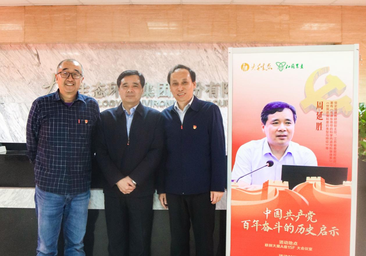 2021年4月22日下午,江蘇省農(nóng)墾投資管理有限公司黨支部和大千生態(tài)環(huán)境集團股份有限公司黨支部聯(lián)合組織黨史學(xué)習活動,特別邀請了中共江蘇省委黨校黨史黨建教研部副主任周延勝教授為黨員們作《中國共產(chǎn)黨百年奮斗的歷史啟示》主題講座。