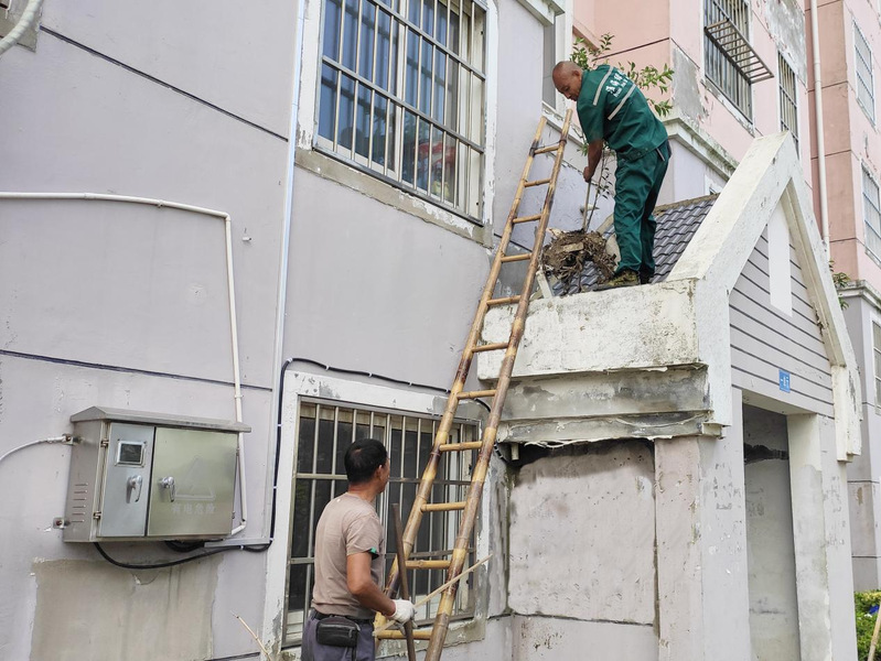 在黨史學習教育過程中,農(nóng)場社區(qū)城南居委會的黨員干部和網(wǎng)格員在走訪調(diào)研過程中,發(fā)現(xiàn)沿路的一些樓房單元門頂棚上積攢了許多垃圾,單純從地面上看,有的看不到,但也有的看到長出的一些雜草或小樹簇立在那兒;而如果從居家的窗口特意望去,就可看到垃圾存在,而且十分不雅觀。為進一步營造凈化、美化的轄區(qū)環(huán)境,近日,淮海社區(qū)城南居委會聯(lián)合環(huán)衛(wèi)所相關(guān)人員一起,針對淮海路沿線樓房的單元門頂棚存在的垃圾、雜物現(xiàn)象開展了專項清理整治行動。