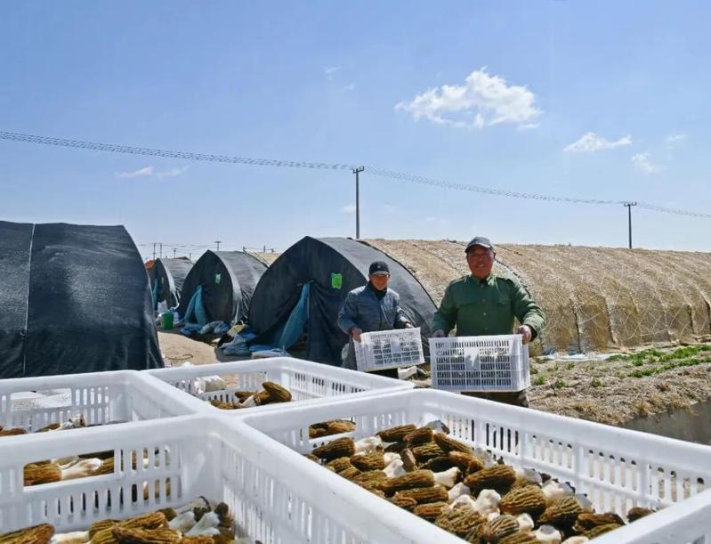 近日,淮海農(nóng)場(chǎng)首茬菌菇正式上市,采收期將持續(xù)至4月底。圖為工作人員正在小心翼翼地搬運(yùn)杠杠采摘下來的羊肚菌。