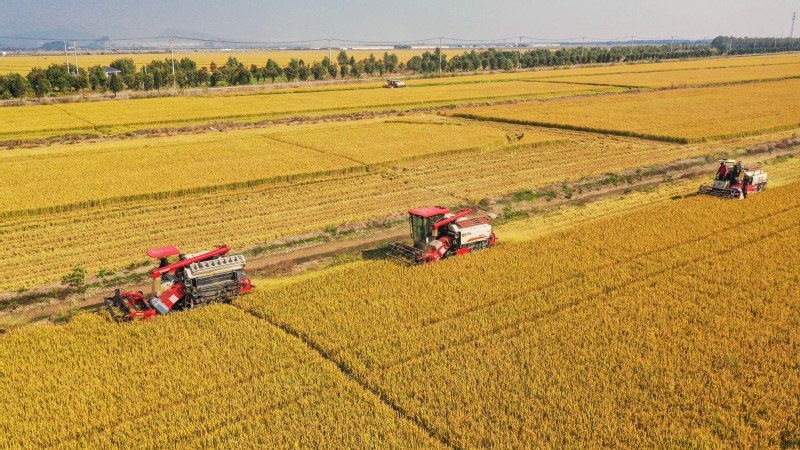 秋風(fēng)拂過(guò),稻菽飄香。眼下,正值水稻收割季節(jié),云臺(tái)大地一片金黃。10月22日,蘇墾農(nóng)發(fā)云臺(tái)分公司6000余畝水稻開(kāi)鐮收割,在田間奏響“豐收曲”。機(jī)械轟鳴,沉甸甸的稻穗被攬入“懷中”,收割、脫粒、裝車(chē),飽滿的谷粒傾瀉而下,被裝進(jìn)運(yùn)糧車(chē)?yán)?,工作人員美滋滋地看著田間的稻谷被收割殆盡,空氣中彌漫著稻谷的醇香。“今年我們的水稻長(zhǎng)勢(shì)好、產(chǎn)量高,和我們以‘繡花功夫’狠抓精細(xì)化管理是分不開(kāi)的?!痹婆_(tái)農(nóng)場(chǎng)公司黨委副書(shū)記、蘇墾農(nóng)發(fā)云臺(tái)分公司總經(jīng)理宋光鋒在收割現(xiàn)場(chǎng)會(huì)滿意地說(shuō)道。鄉(xiāng)村振興的核心是產(chǎn)業(yè)興旺,現(xiàn)代農(nóng)業(yè)是云臺(tái)產(chǎn)業(yè)興旺的中堅(jiān)力量。近年來(lái),蘇墾農(nóng)發(fā)云臺(tái)分公司堅(jiān)持標(biāo)準(zhǔn)化生產(chǎn)方式,將技術(shù)、人才、信息等資源要素“引”向農(nóng)業(yè)、“流”向企業(yè),充分發(fā)揮國(guó)有農(nóng)業(yè)企業(yè)帶頭作用,為農(nóng)業(yè)產(chǎn)業(yè)發(fā)展注入新的活力。據(jù)了解,今年“三秋”,云臺(tái)將投入小型收割機(jī)20臺(tái)用于水稻收割,并投入播種機(jī)13臺(tái),預(yù)計(jì)本月28日全部收割完畢,稻茬小麥將于31日播種結(jié)束。下一步,云臺(tái)將扎實(shí)做好秋收秋種秋管工作,牢牢守住“糧袋子”,為推進(jìn)鄉(xiāng)村振興和糧食安全貢獻(xiàn)云臺(tái)力量。