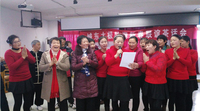 聯(lián)誼會上,太極隊隊長胡建軍發(fā)言說:“城東太極隊在過去的一年里,多次參加射陽縣舉辦的各項中老年人的活動,并屢次獲獎。希望大家在新的一年里,繼續(xù)發(fā)揚(yáng)團(tuán)結(jié)友愛的精神,齊健身、同歡樂。”