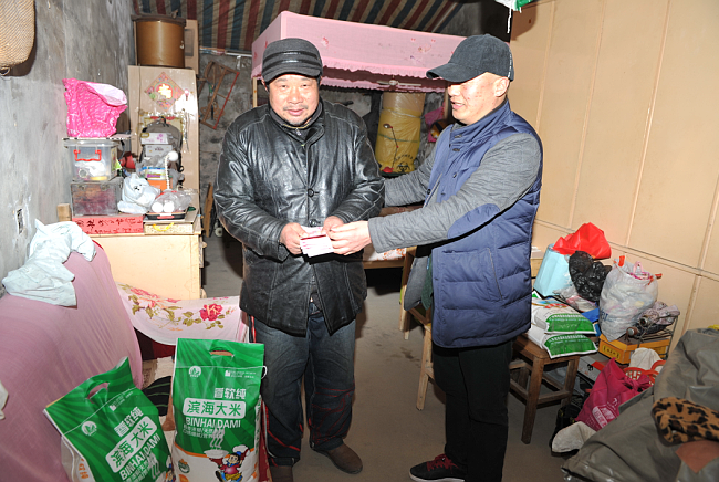 原來,陸同林是農(nóng)場轉崗職工,通過自謀職業(yè),從事個體經(jīng)營業(yè)務。有著濃厚軍墾情結的他,在兩天前特地找到臧成龍,想通過他了解,并在年前資助兩戶貧困戶的想法。