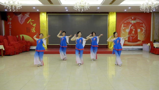 如今經(jīng)過(guò)多場(chǎng)賽事考驗(yàn)的農(nóng)場(chǎng)本土教練,又產(chǎn)生了把農(nóng)場(chǎng)退休舞蹈隊(duì)員們跳舞健身的風(fēng)采拍下并上傳上網(wǎng)的想法。這一想法迅速得到了農(nóng)場(chǎng)廣大姐妹們的贊同,并迅速組織排練、磨合和提高,在舞蹈表演熟練的基礎(chǔ)上,于是統(tǒng)一服裝,精心編排了“哈達(dá)”和“幸福小城”的舞蹈,讓農(nóng)場(chǎng)職工和廣大網(wǎng)民見(jiàn)證了淮海老年職工的舞蹈風(fēng)采。圖為農(nóng)場(chǎng)老年舞蹈隊(duì)員們?cè)诰呐啪?ldquo;哈達(dá)”和“幸福小城”舞蹈在優(yōu)酷網(wǎng)上截屏?xí)r的鏡頭。