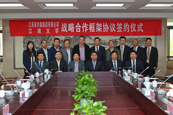 蘇墾農(nóng)發(fā)股份公司總部相關(guān)部門及蘇墾米業(yè)負(fù)責(zé)人;江南大學(xué)校長(zhǎng)辦公室、產(chǎn)業(yè)技術(shù)研究院、國(guó)家工程實(shí)驗(yàn)室等負(fù)責(zé)人參加了簽約儀式。