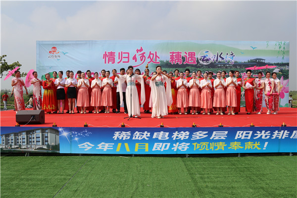 隨后大家一起觀看了古典舞《荷花頌》、葫蘆絲二重奏《再唱山歌給黨聽》、武術(shù)表演《精忠報(bào)國(guó)》、經(jīng)典古詩詞詠唱《使至塞上》、歌曲對(duì)唱等自編自演的節(jié)目表演贏得了現(xiàn)場(chǎng)嘉賓及游客的陣陣掌聲。演出現(xiàn)場(chǎng)還穿插了微信紅包、幸運(yùn)游客抽獎(jiǎng)等互動(dòng)環(huán)節(jié),吸引了眾多游客現(xiàn)場(chǎng)參與,為荷花節(jié)聚集了人氣。
