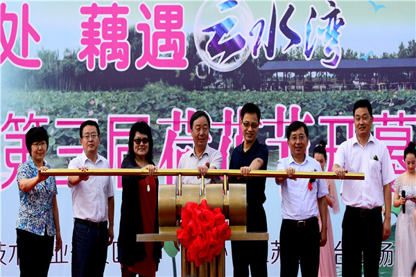 連云港市人大副主任董春科宣布連云港市第三屆荷花節(jié)開幕,并與省國(guó)資委監(jiān)事會(huì)主席李海洋、江蘇農(nóng)墾集團(tuán)黨委委員、總會(huì)計(jì)師劉克英、連云港高新區(qū)黨工委書記陳佑龍、連云港市國(guó)土局長(zhǎng)孔令泰先生、連云港市旅游局長(zhǎng)王芬、云臺(tái)農(nóng)場(chǎng)黨委書記董事長(zhǎng)劉衛(wèi)華共同為開幕式推動(dòng)啟動(dòng)桿,第三屆連云港市荷花節(jié)正式開幕,同時(shí),荷文化文藝匯演也正式拉開序幕。