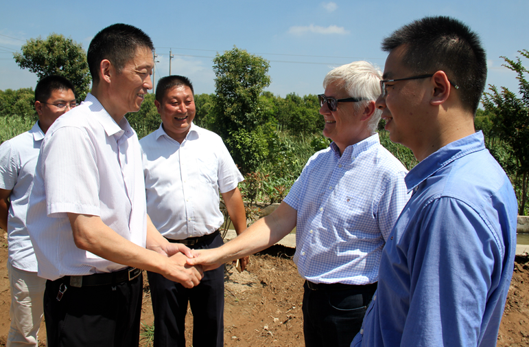 隨后,考察團(tuán)來到中德示范園種植基地,先后參觀了水稻缽苗擺栽現(xiàn)場(chǎng),玉米品種小區(qū)試驗(yàn)現(xiàn)場(chǎng),旱直播水稻現(xiàn)場(chǎng)和大豆品種試驗(yàn)和株行距試驗(yàn)現(xiàn)場(chǎng),Eric Doser對(duì)于水稻缽苗擺栽產(chǎn)生了極大的興趣,對(duì)于一個(gè)以旱作物為主的國家來說,中國的水稻生產(chǎn)技術(shù)和機(jī)械化水平著實(shí)讓考察團(tuán)的每一位成員感到驚奇。