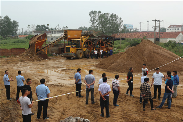 為嚴(yán)厲打擊非法洗砂礦行為,切實(shí)保護(hù)自然生態(tài)環(huán)境,9月6日上午,在海州區(qū)公安分局、環(huán)保局、國土局、水利局、市場(chǎng)監(jiān)督管理局等部門的大力支持下,崗埠農(nóng)場(chǎng)有限公司安委會(huì)、社區(qū)、派出所和相關(guān)生產(chǎn)區(qū)、部門聯(lián)合開展打擊非法洗砂清理取締專項(xiàng)行動(dòng)。農(nóng)場(chǎng)公司總經(jīng)理助理王國亮親自帶隊(duì),現(xiàn)場(chǎng)督導(dǎo)整治行動(dòng)。
