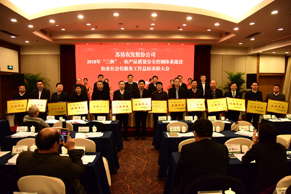 12月19日,蘇墾農(nóng)發(fā)股份公司在南京隆重召開2018年“三秋”、農(nóng)產(chǎn)品質(zhì)量安全控制體系建設(shè)、農(nóng)業(yè)社會化服務(wù)工作總結(jié)表彰大會。集團公司總經(jīng)理、蘇墾農(nóng)發(fā)股份公司董事長胡兆輝主持會議并講話。集團公司黨委委員、蘇墾農(nóng)發(fā)股份公司總裁蘇志富作報告,并宣讀表彰決定。會議表彰了在2018年“三秋”工作、農(nóng)產(chǎn)品質(zhì)量安全控制體系建設(shè)及農(nóng)業(yè)社會化服務(wù)工作中表現(xiàn)優(yōu)異、成績突出的先進(jìn)集體和先進(jìn)個人。