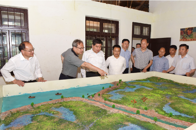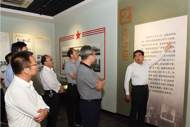 沿著農(nóng)建四師紀(jì)念碑雕像,毛澤東主席關(guān)于生產(chǎn)待命、建設(shè)農(nóng)場的命令碑文和農(nóng)建四師暨淮海農(nóng)場歷史陳列館,鄧慶??吹谜J(rèn)真,聽得仔細(xì),不時(shí)記下珍貴史料。農(nóng)建四師紀(jì)念碑雕像的含義,毛主席命令碑文,陳列館中的許多老照片、老物件和軍墾文化的情況介紹,鄧慶海都了然于心,對有的圖片、文字,他還掏出手機(jī)拍照留存。鄧慶海強(qiáng)調(diào),農(nóng)建四師是一支英雄的部隊(duì),陳列館內(nèi)史料豐富、內(nèi)容詳實(shí),是一個(gè)軍墾傳統(tǒng)文化教育的好平臺(tái)。今后要繼續(xù)發(fā)揮好陳列館的紅色教育作用,繼承發(fā)揚(yáng)“艱苦奮斗、勇于奉獻(xiàn)、開拓創(chuàng)新”的蘇墾精神,讓更多人的思想在這里得到軍墾傳統(tǒng)文化的洗禮。
