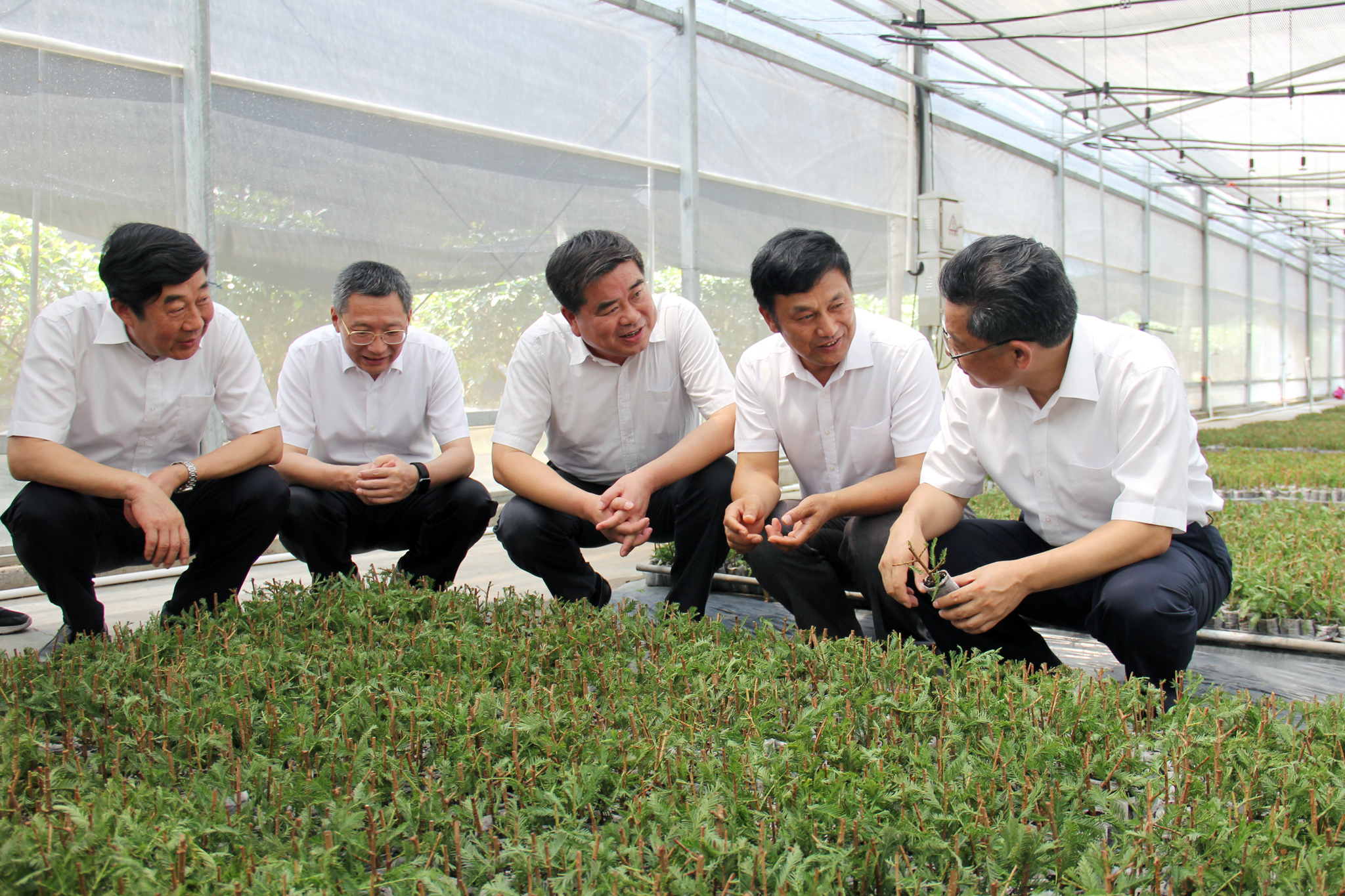 任振鶴一行首先察看了?港農(nóng)場(chǎng)的展板介紹。當(dāng)了解到農(nóng)場(chǎng)實(shí)現(xiàn)糧食高產(chǎn)穩(wěn)產(chǎn),水稻畝產(chǎn)達(dá)1300斤、小麥達(dá)1000斤后,任振鶴表示肯定。隨后,任振鶴走進(jìn)?港農(nóng)場(chǎng)有機(jī)農(nóng)莊連棟大棚,詳細(xì)察看中山杉容器育苗和紅心火龍果種植??吹酱笈锢镏猩缴家?guī)格齊全,所育品種耐漬耐鹽、扦插成活率穩(wěn)定在70%以上,應(yīng)時(shí)水果火龍果長(zhǎng)勢(shì)喜人、豐收在望,市場(chǎng)前景比較好,任振鶴表示贊賞,并勉勵(lì)農(nóng)場(chǎng)公司更加重視研發(fā),加快成果轉(zhuǎn)化,推動(dòng)農(nóng)業(yè)產(chǎn)業(yè)化。在聽取了?港農(nóng)場(chǎng)黨委書記王世伯介紹的“常規(guī)農(nóng)業(yè)高效化、高效農(nóng)業(yè)規(guī)模化、有機(jī)農(nóng)業(yè)特色化、林苗產(chǎn)業(yè)精品化”發(fā)展思路后,任振鶴頻頻點(diǎn)頭,對(duì)?港農(nóng)場(chǎng)堅(jiān)持有機(jī)農(nóng)業(yè)20年,大力發(fā)展“三西”產(chǎn)業(yè)(西瓜、西蘭花、西紅花)的做法表示肯定。