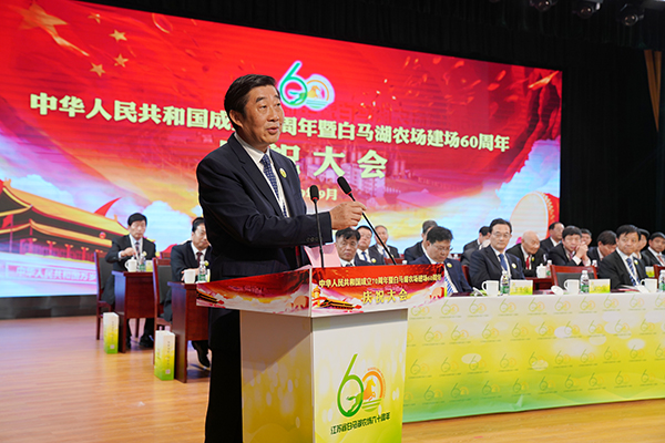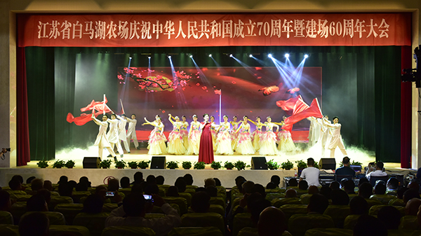 9月23日,在節(jié)日般的喜慶氛圍中,白馬湖農(nóng)場(chǎng)有限公司干部職工代表和特邀嘉賓共450人歡聚一堂召開慶祝大會(huì),共同慶祝中華人民共和國(guó)成立70周年暨白馬湖農(nóng)場(chǎng)建場(chǎng)60周年。集團(tuán)公司總經(jīng)理、蘇墾農(nóng)發(fā)董事長(zhǎng)胡兆輝,淮安區(qū)委書記徐子佳出席并講話,白馬湖農(nóng)場(chǎng)公司黨委書記、董事長(zhǎng)、總經(jīng)理姚春華致辭,黨委副書記韓正光主持大會(huì)。
