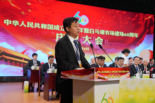 胡兆輝在講話中指出,建場(chǎng)60年來,一代又一代白馬湖人傳承和弘揚(yáng)“艱苦奮斗、勇于奉獻(xiàn)、開拓創(chuàng)新”的農(nóng)墾精神,櫛風(fēng)沐雨、薪火相傳,形成了以種植業(yè)為基礎(chǔ),種子為龍頭,育繁推、產(chǎn)加銷一體化經(jīng)營(yíng)、綠化林苗和水產(chǎn)養(yǎng)殖協(xié)同發(fā)展的現(xiàn)代農(nóng)業(yè)產(chǎn)業(yè)體系;實(shí)現(xiàn)了綜合實(shí)力和發(fā)展質(zhì)量穩(wěn)步提升,城鎮(zhèn)面貌和生態(tài)環(huán)境持續(xù)改善,公共服務(wù)和社會(huì)治理水平顯著提高,職工群眾生活質(zhì)量和幸福指數(shù)不斷攀升。