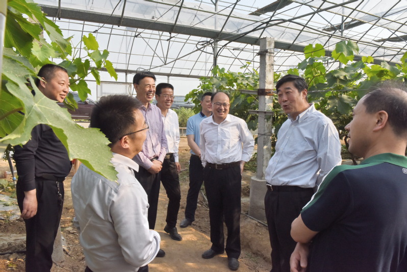 胡兆輝在淮海高效種植園區(qū)參觀,連棟大棚內(nèi)青翠的葡萄架下掛滿了葡萄。他信步走上前去察看葡萄的長勢情況,并詳細(xì)詢問了葡萄的品種及市場生產(chǎn)銷售情況,以及淮海其他瓜果苗木的生產(chǎn)情況。他要求,淮海要在產(chǎn)品質(zhì)量提升、品牌包裝和市場拓展上下功夫,爭取創(chuàng)造更大的市場。