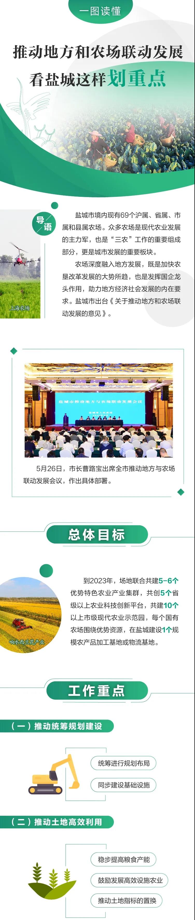 鹽城是長三角27個中心區(qū)城市之一,空間大、生態(tài)好、農(nóng)業(yè)強,境內(nèi)現(xiàn)有滬屬、省屬、市屬和縣屬農(nóng)場共69個。市委市政府高度重視“三農(nóng)”工作,研究出臺《關(guān)于推動地方與農(nóng)場聯(lián)動發(fā)展的意見》,加強頂層設(shè)計,推動優(yōu)勢疊加,促進地方與農(nóng)場聯(lián)動發(fā)展,實現(xiàn)由農(nóng)業(yè)大市向農(nóng)業(yè)強市轉(zhuǎn)變。