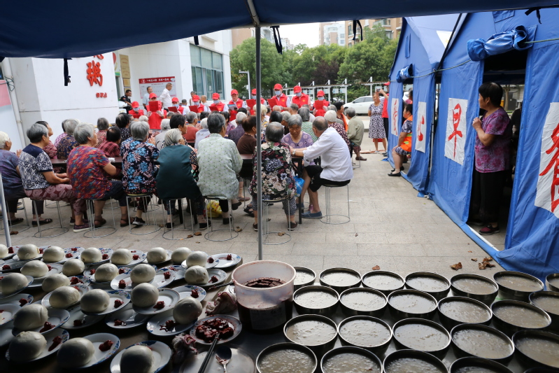 7月22日,早上5點多,第一天參加活動的支部黨員已早早來到通盛社區(qū)莫文隋愛心粥服務(wù)點,開始了一個忙碌而有意義的早晨。黨員志愿者們身著紅色馬甲,與其他志愿者一起為當(dāng)天前來就餐的85位孤寡老人、殘疾人、環(huán)衛(wèi)工端飯送菜,忙碌不停,用最直接、最貼心的語言、行動,送上溫暖和關(guān)愛。就餐者一句簡單的謝謝,讓黨員志愿者心中都涌動著難以言盡的感動。