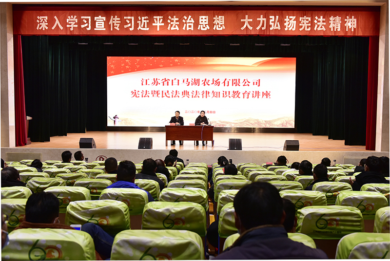 12月4日上午,在我國第七個國家憲法日和第三個“憲法宣傳周”之際,白馬湖農(nóng)場公司圍繞“深入學習貫徹習近平法治思想 大力弘揚憲法精神”這一主題,通過舉辦憲法暨民法典法律知識教育講座,同時啟動開展“法治宣傳月”和“憲法宣傳周”活動,深刻宣傳領會黨的十九屆五中全會精神,深化了解把握全面依法治國的重大意義。