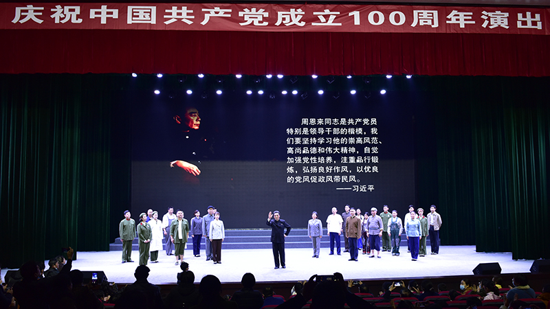 周恩來,這是一個光榮的名字、不朽的名字。周恩來同志是近代以來中華民族的一顆璀璨巨星,是中國共產(chǎn)黨人的一面不朽旗幟。作為淮安市委慶祝中國共產(chǎn)黨成立100周年獻禮作品之一,該劇以習近平總書記提出的不忘初心、堅守信仰,對黨忠誠、維護大局,熱愛人民、勤政為民,自我革命、永遠奮斗,勇于擔當、鞠躬盡瘁,嚴于律己、清正廉潔這六個杰出楷模為主線,擷取了黃河搶險、送侄回鄉(xiāng)、故鄉(xiāng)行、一件珍貴的襯衫、顧全大局、西花廳不滅的燈光、最后的歲月等七個篇章,以藝術(shù)的手法還原或再現(xiàn)了周恩來作為中國共產(chǎn)黨人杰出楷模,在為中國人民謀幸福、為中華民族謀復(fù)興、為人類進步事業(yè)而奮斗的光輝一生中的一些典型情景,再現(xiàn)和展示了周恩來這一偉岸的精神豐碑,塑造和彰顯了一名優(yōu)秀中國共產(chǎn)黨人的光輝形象,使大家深受感染并深愛感動。紛紛表示要深入學(xué)習周恩來對理想信念堅定執(zhí)著、對黨的事業(yè)忠貞不渝、對革命工作高度負責、對人民群眾情懷至深、對自我修養(yǎng)嚴格要求的精神風范,始終做到不忘初心、堅守信仰,牢記手中的權(quán)力是黨和人民賦予的,是用來為人民服務(wù)的,一身正氣、兩袖清風,敬畏人民、敬畏組織、敬畏法紀,更好地加強自身建設(shè),做一個堂堂正正的共產(chǎn)黨人,用實際行動在新時代新征程上作出各自應(yīng)有的貢獻。