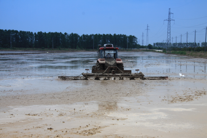 新洋分公司全面推行機(jī)械耙田,速度快,質(zhì)量好,為提高機(jī)插秧的質(zhì)量打下了良好的基礎(chǔ)。
