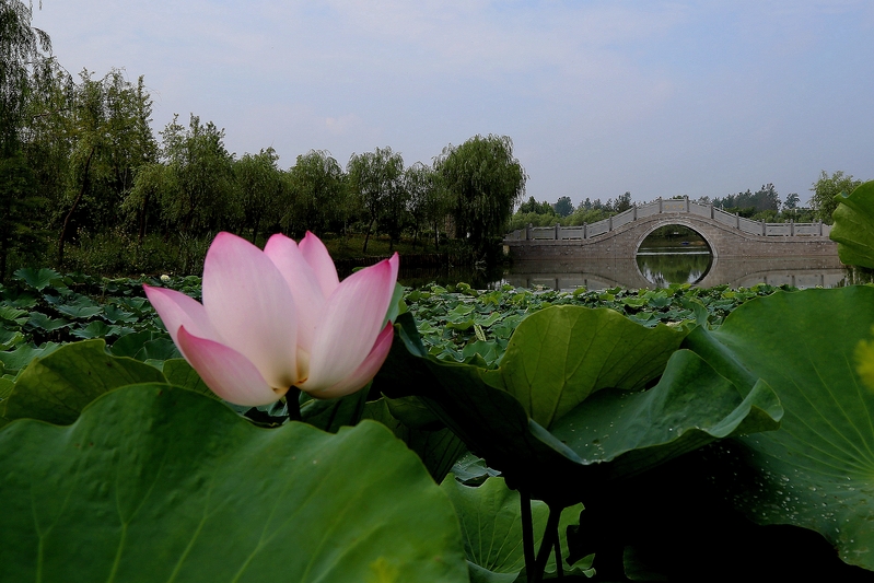 金龍灣引種了櫻花、桃花、海棠花、月季花、菊花、梅花等多種花種,可謂四季常綠,四季有花。金龍灣由假山、雕塑、毓龍湖、盤龍島、駐春園、水韻舞臺、兒童樂園、道德文化長廊、人物特寫、書畫攝影長廊、知青石、健身場、人行步道等多個人文景觀和自然景點組成,集文化與生態(tài)為一體,文化熏陶與景觀欣賞、休閑健身相輔相成,是新洋人茶余飯后休閑游玩的好去處。荷花是2019年引種于公園的毓龍湖的,經(jīng)過兩年的繁殖,荷塘面積不斷擴(kuò)大。近日,荷花陸續(xù)開放,引來新洋人前來觀賞。