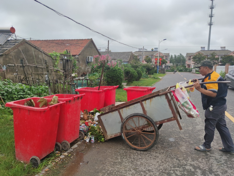 昨天下午,我在淮海農(nóng)場振興路一側(cè)看到,農(nóng)場城西環(huán)衛(wèi)工工何亮明在汗涔涔地?fù)]舞著鐵锨,將一家一戶收集并用拖車拖來的垃圾,又鏟到路旁垃圾桶里的鏡頭。聞著夏日垃圾散發(fā)出來的異味,我的心里不禁感嘆著,一個路人對這刺鼻的臭味異常敏感,何況一個每天3個多小時中,泡在這味中的環(huán)衛(wèi)工人。也正是他們的辛勤付出,換來了農(nóng)場環(huán)境的美好和好心情。