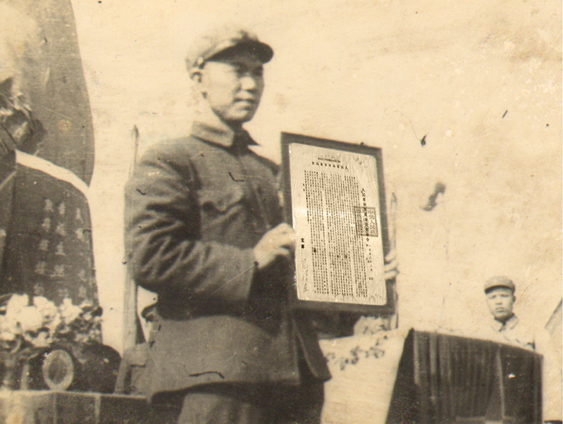 圖為中國人民解放軍步兵第102師副師長李桂蓮在海門縣三廠鎮(zhèn)接受命令時的鏡頭。