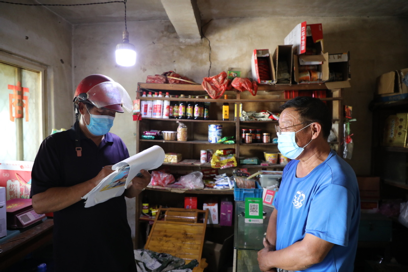“早啊,最近沒(méi)出連云港吧?戴好口罩,沒(méi)事兒別扎堆啊,我們不能給農(nóng)場(chǎng)添亂?!泵刻熳龊靡咔榕挪榈怯洠橇旱沦F起床后做的第一件事。雖然在志愿者中他年齡最大,腿腳也不太靈活,但年齡和身體絲毫也沒(méi)有耽誤他工作的腳步。東灘居委會(huì)位于水產(chǎn)公司轄區(qū),這里經(jīng)常會(huì)有一些起早貪黑抓蝦捕魚(yú)的人,居民區(qū)分布較為零散,住戶(hù)中老人居多,不利于防疫工作開(kāi)展。為了時(shí)刻掌握轄區(qū)內(nèi)居民的活動(dòng)軌跡和健康情況,梁德貴便騎上自己的三輪車(chē)挨家挨戶(hù)上門(mén)去了解,仔細(xì)地記下每家每戶(hù)的生活狀況。他與居民約定好具體時(shí)間,每天早、中、晚多個(gè)時(shí)間段,穿梭在居民組的各個(gè)角落,走訪入戶(hù)、排查宣傳、發(fā)放物資、為居民測(cè)量體溫登記等樣樣工作都不落下。他像一頭老黃牛一樣默默地做好每一件防疫工作:“防疫無(wú)小事,只有第一線的人做好了、做細(xì)了,才不會(huì)出差錯(cuò),”這是梁德貴常說(shuō)的一句話。
